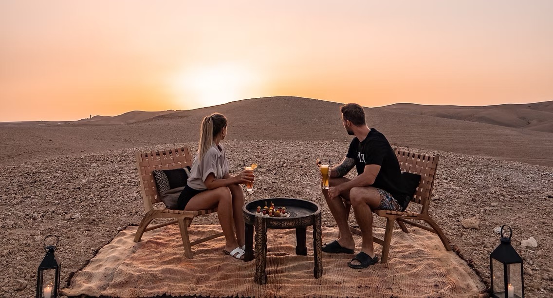 Jednodenní výlet do pouště s koupáním v bazénu a obědem v oáze, kde na vás čeká výběr marockých, orientálních a mezinárodních jídel a doplňkové aktivity jako hodina vaření, cvičení jógy nebo jízda na velbloudu. Tento zážitek je ideální pro ty, kteří chtějí relaxovat a vychutnat si chutě regionu v nádherném prostředí.